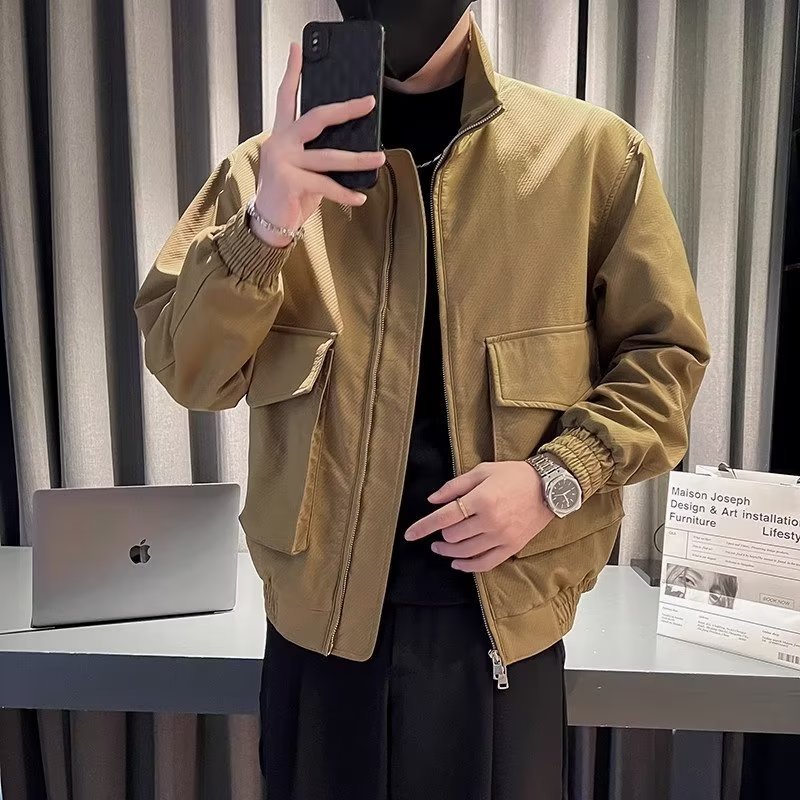 Spring and autumn men's new fashion casual sports two-piece stand-up collar cardigan jacket trendy straight trousers suit
